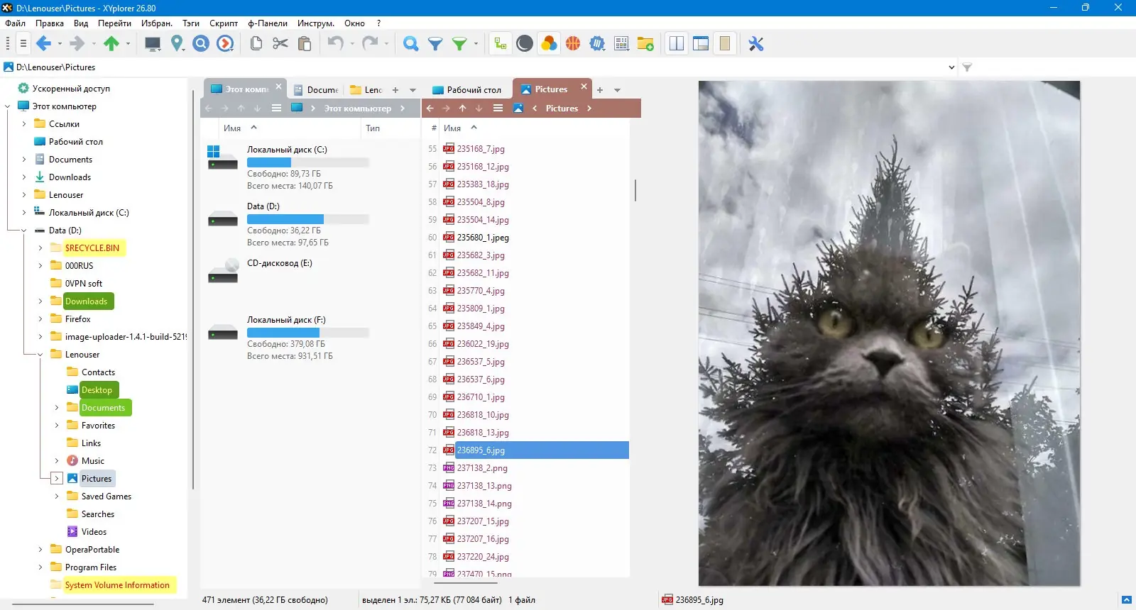 XYplorer — это мощный и гибкий файловый менеджер с поддержкой многовкладочного интерфейса, созданный для эффективной навигации и управления файлами в операционных системах Windows. Программа сочетает в себе интуитивный дизайн и расширенный функционал, превосходя возможности стандартного проводника. Благодаря высокой степени настройки и портативности, XYplorer подходит как для повседневного использования, так и для профессиональных задач.