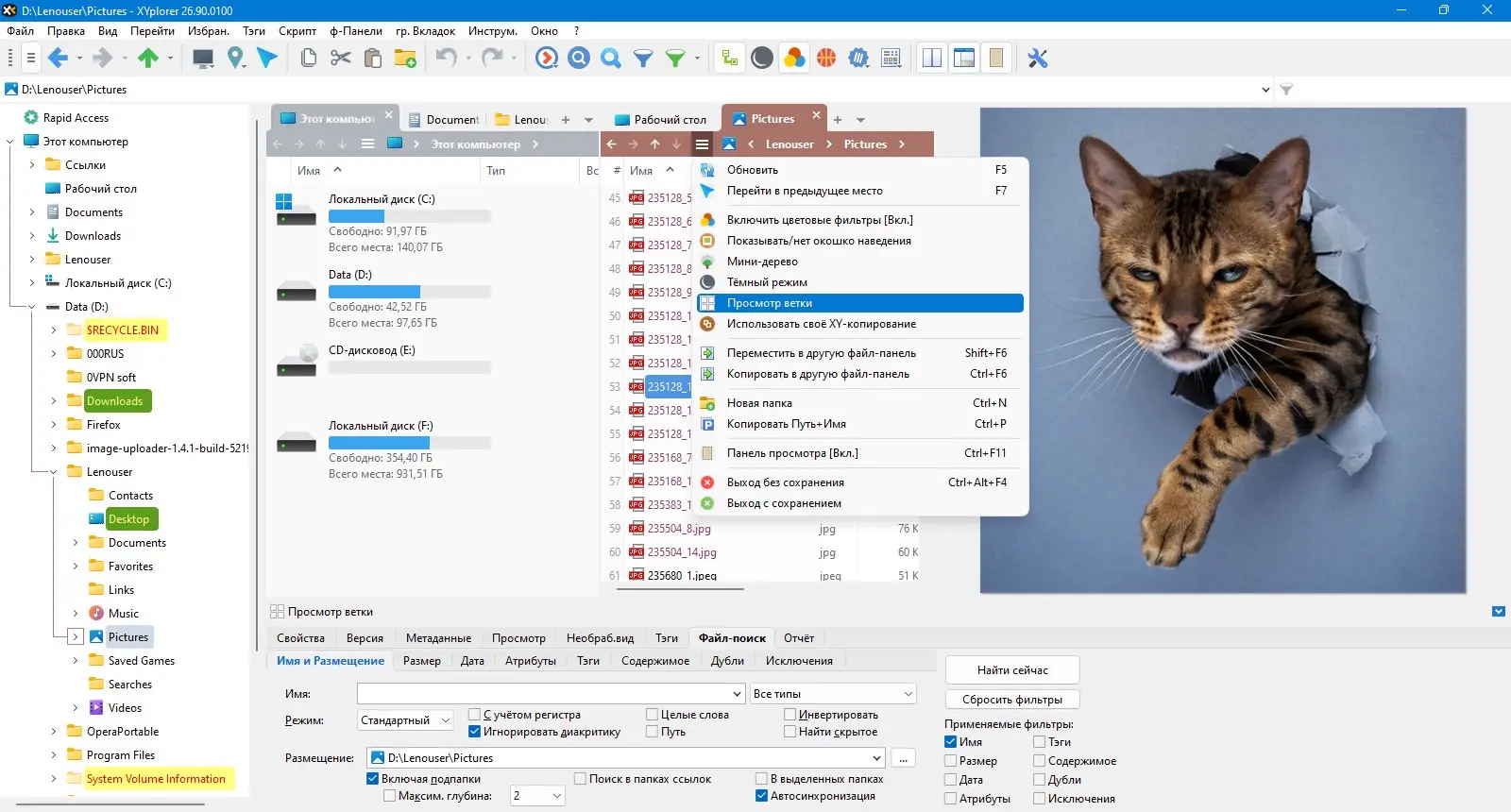 XYplorer предлагает современный подход к управлению файлами, заменяя стандартный проводник Windows более гибким и мощным решением. Интерфейс программы знаком пользователю с первого взгляда, но за привычной оболочкой скрывается множество инструментов, повышающих производительность. Каждое окно можно открыть в отдельной вкладке, что позволяет одновременно работать с несколькими директориями без необходимости переключения между отдельными окнами.