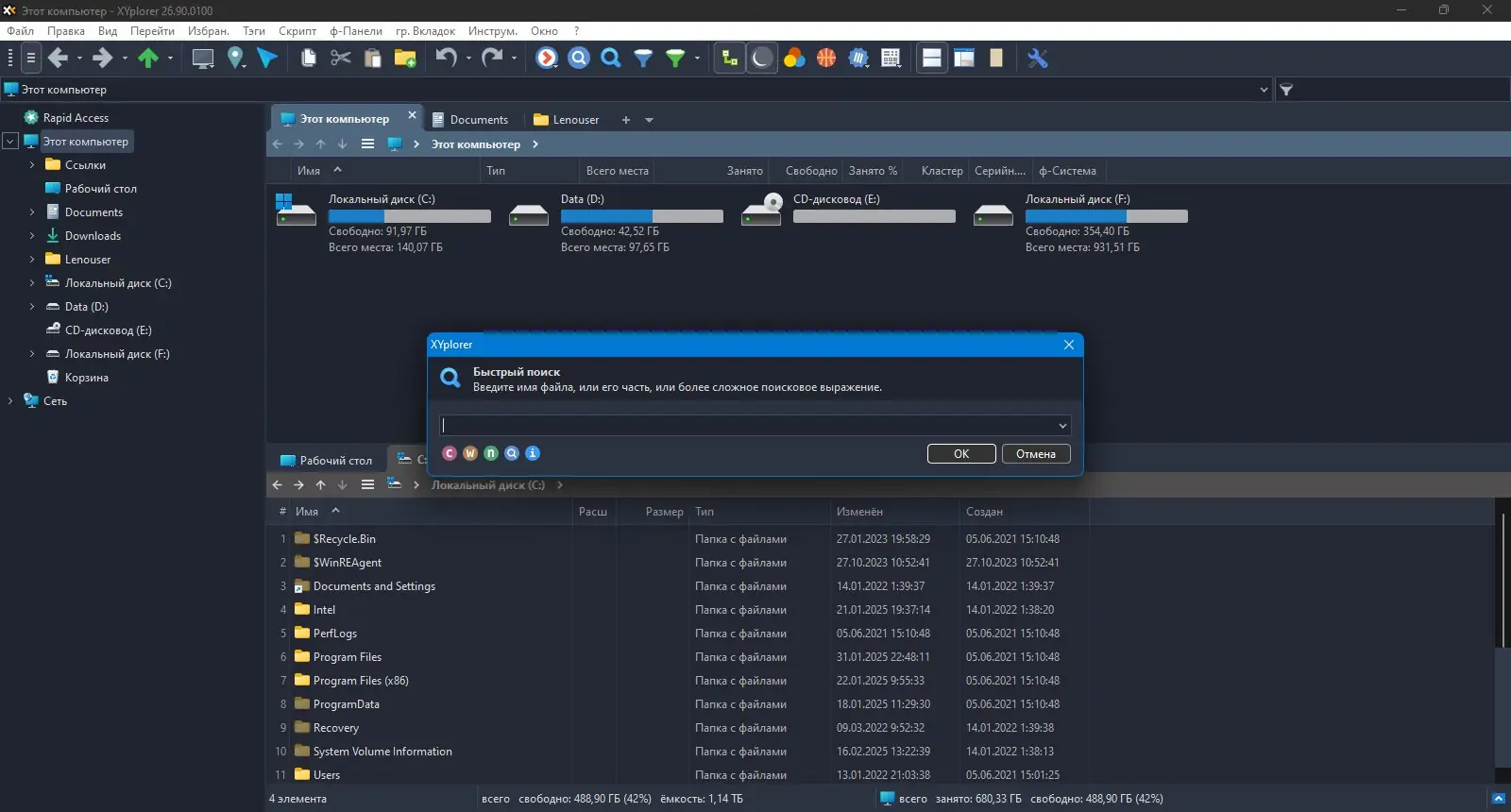 XYplorer — это многовкладочный файловый менеджер с расширенными возможностями, созданный для эффективной навигации по файловой системе Windows. Программа сочетает в себе интуитивный интерфейс и богатый функционал, позволяя быстро управлять папками, файлами и дисками. Отлично подходит как для повседневного использования, так и для сложных задач администрирования.