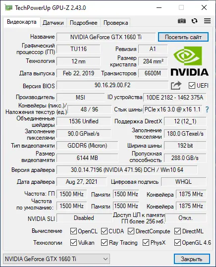 - Содержит GPU-Z, которая отображает параметры графического ядра, видеопамяти и режимов работы видеокарты