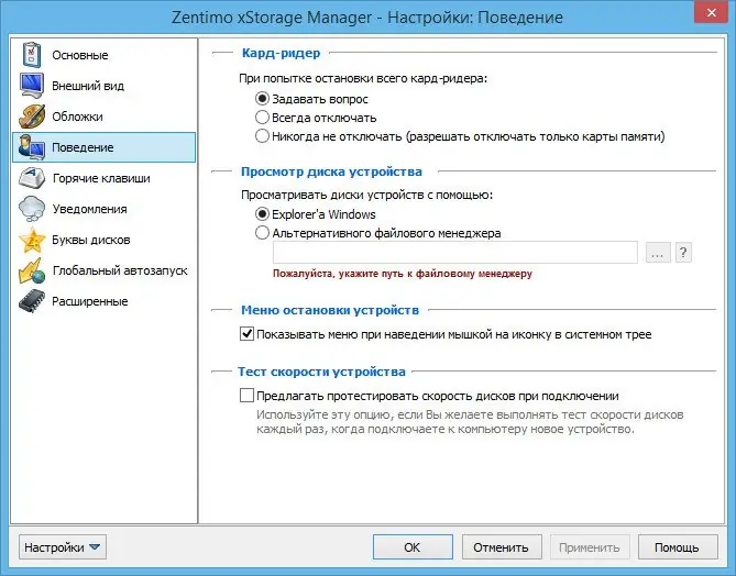 После установки Zentimo xStorage Manager интегрируется в системный трей, откуда доступны все функции. Клик по иконке открывает меню с перечнем подключённых устройств, каждый из которых можно переименовать, скрыть или остановить одним щелчком. Для быстрого доступа можно назначить горячие клавиши на извлечение конкретного накопителя или вызов главного меню. Встроенный лаунчер позволяет добавлять часто используемые программы с флешки, запуская их напрямую из интерфейса утилиты. Если устройство не удаётся извлечь, программа покажет, какие процессы его используют, и предложит их завершить. Также доступна функция принудительного возврата ранее отключённого устройства — полезно при тестировании или ошибках отключения.