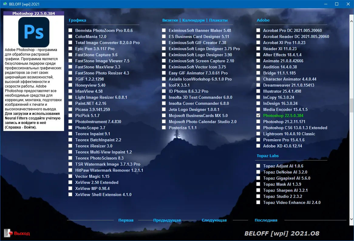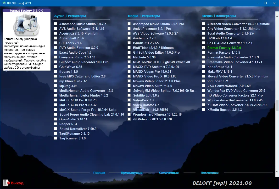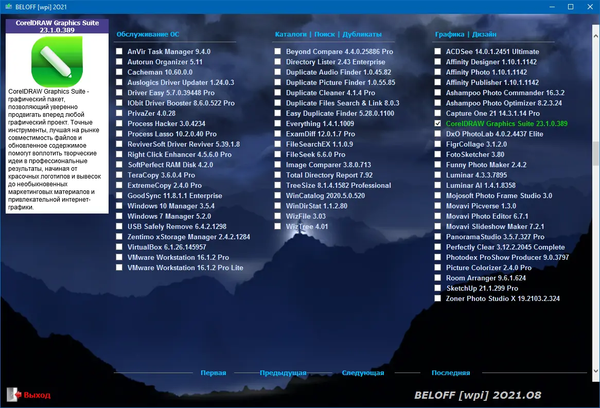 BELOFF — это универсальный сборник программ для операционных систем Windows, объединяющий широкий спектр приложений, утилит и инструментов, распределённых по категориям и готовых к автоматической установке. В комплекте присутствуют портативные версии программ, средства для установки драйверов, а также компоненты для настройки и обслуживания системы. Сборник поддерживает мультизагрузку и совместим с BIOS и UEFI. Он идеально подходит как для новичков, так и для опытных пользователей, стремящихся быстро настроить рабочую среду.