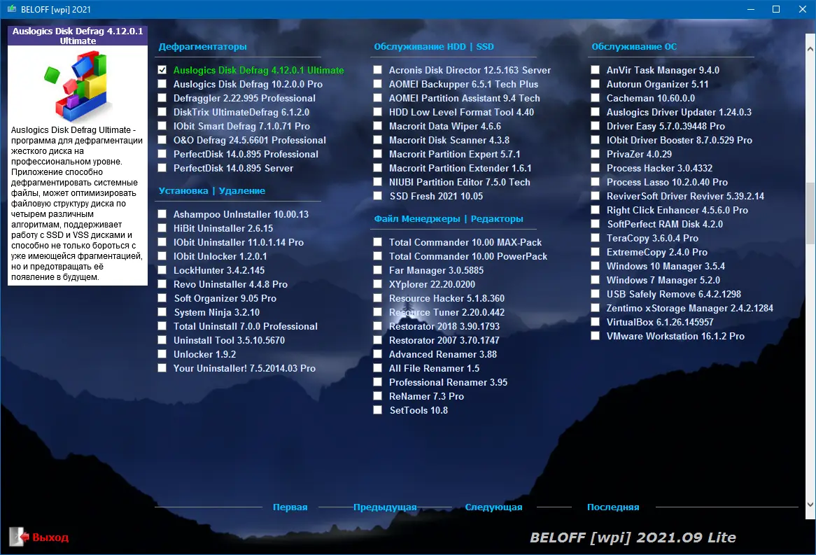 BELOFF представляет собой комплексное программное решение, объединяющее тысячи приложений, утилит и системных инструментов в одном образе. Сборник ориентирован на пользователей, которым требуется быстрый и удобный способ установки необходимого софта на чистую или повреждённую операционную систему. Все программы распределены по категориям, что упрощает навигацию и выбор нужного компонента. Процесс установки автоматизирован, благодаря использованию технологий MInstAll и WPI, что делает работу с дистрибутивом максимально простой даже для новичков.