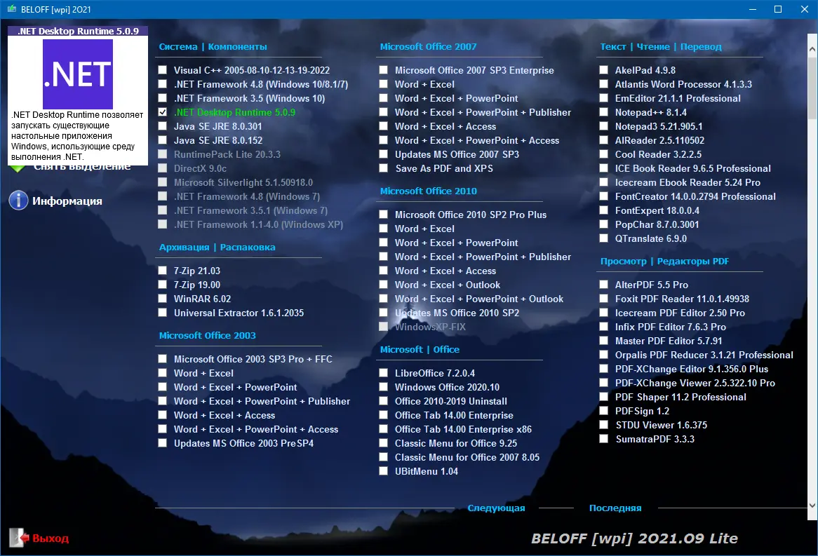 BELOFF — универсальный сборник лучших программ для Windows, объединяющий обширный ассортимент софта с автоматической установкой через MInstAll и WPI. Включает портативные версии, драйверы, утилиты и инструменты для настройки системы. Подходит для восстановления ПК, настройки нового компьютера или удобного развертывания программного обеспечения. Сборник регулярно обновляется, а его структура позволяет легко добавлять или удалять компоненты по необходимости.