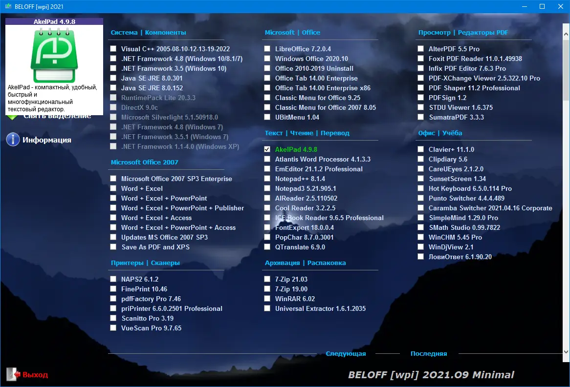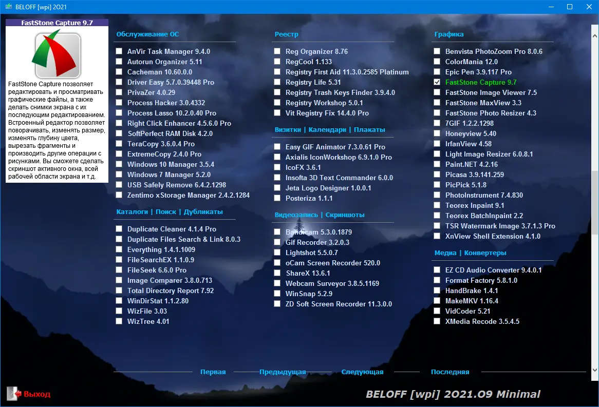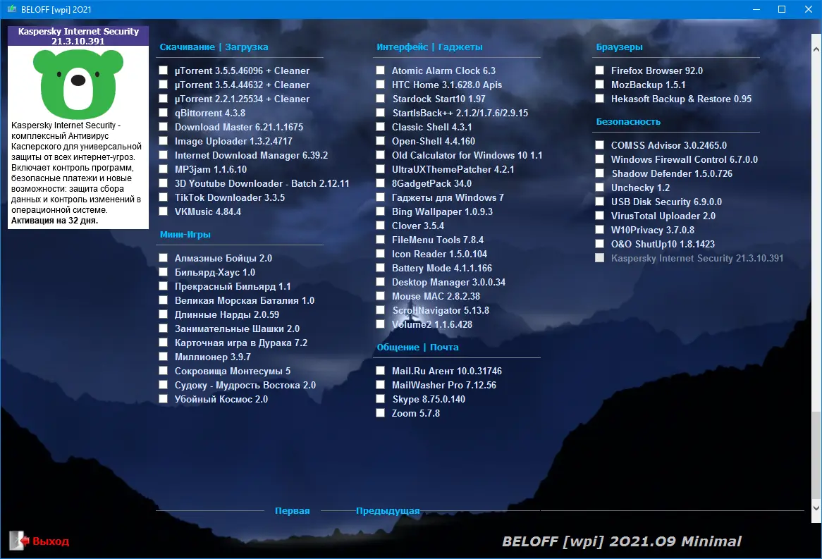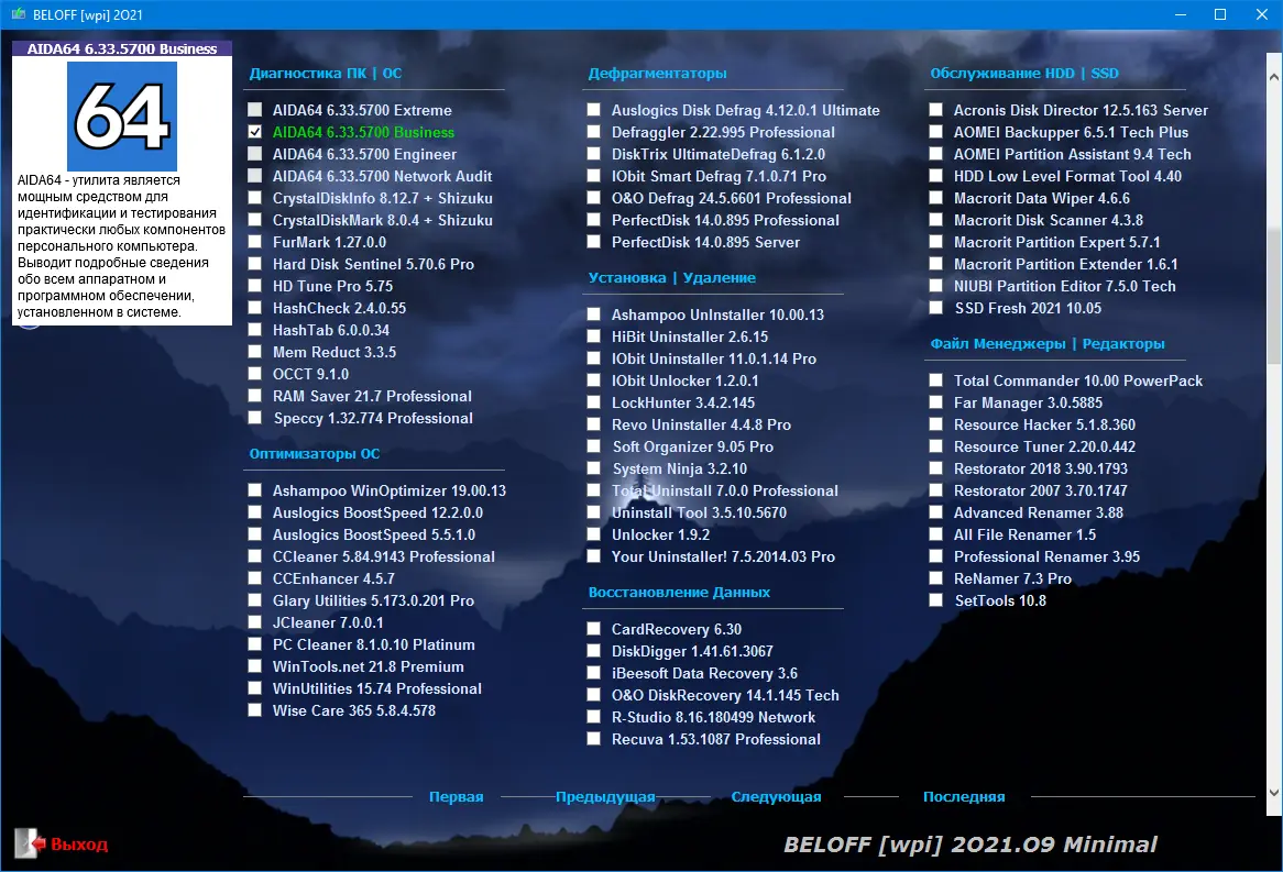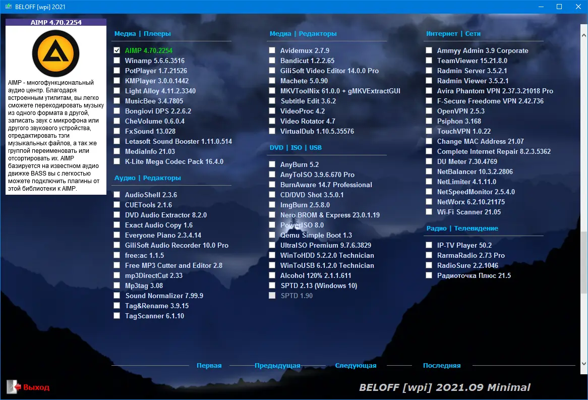 BELOFF представляет собой продуманный и систематизированный набор программного обеспечения, собранный с целью предоставить пользователю всё необходимое для настройки, оптимизации и эксплуатации компьютера под управлением Windows. Каждый компонент тщательно отобран, перепакован и адаптирован для беспроблемной установки. Сборник поддерживает как полноценное развертывание программ на жесткий диск, так и использование портативных версий без установки. В состав включены драйверы, офисные приложения, мультимедийные инструменты, утилиты для обслуживания системы и восстановления данных.