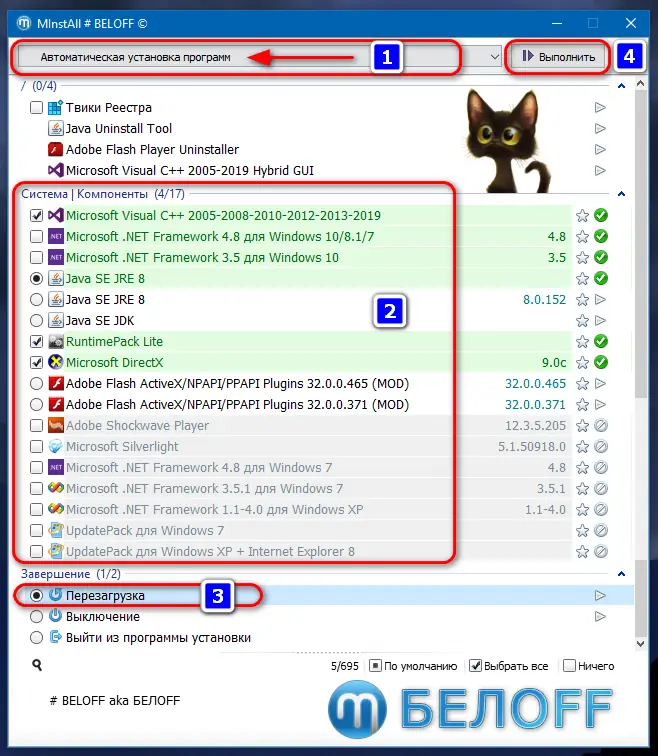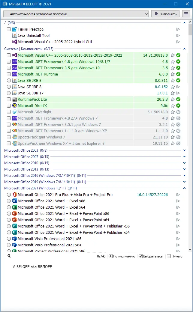 - Удобный интерфейс установки с возможностью фильтрации и поиска нужных программ