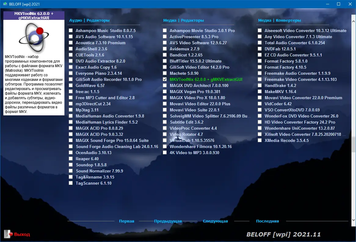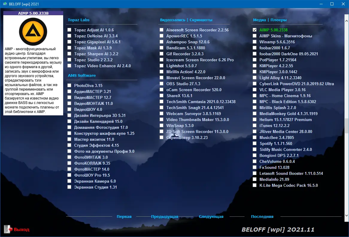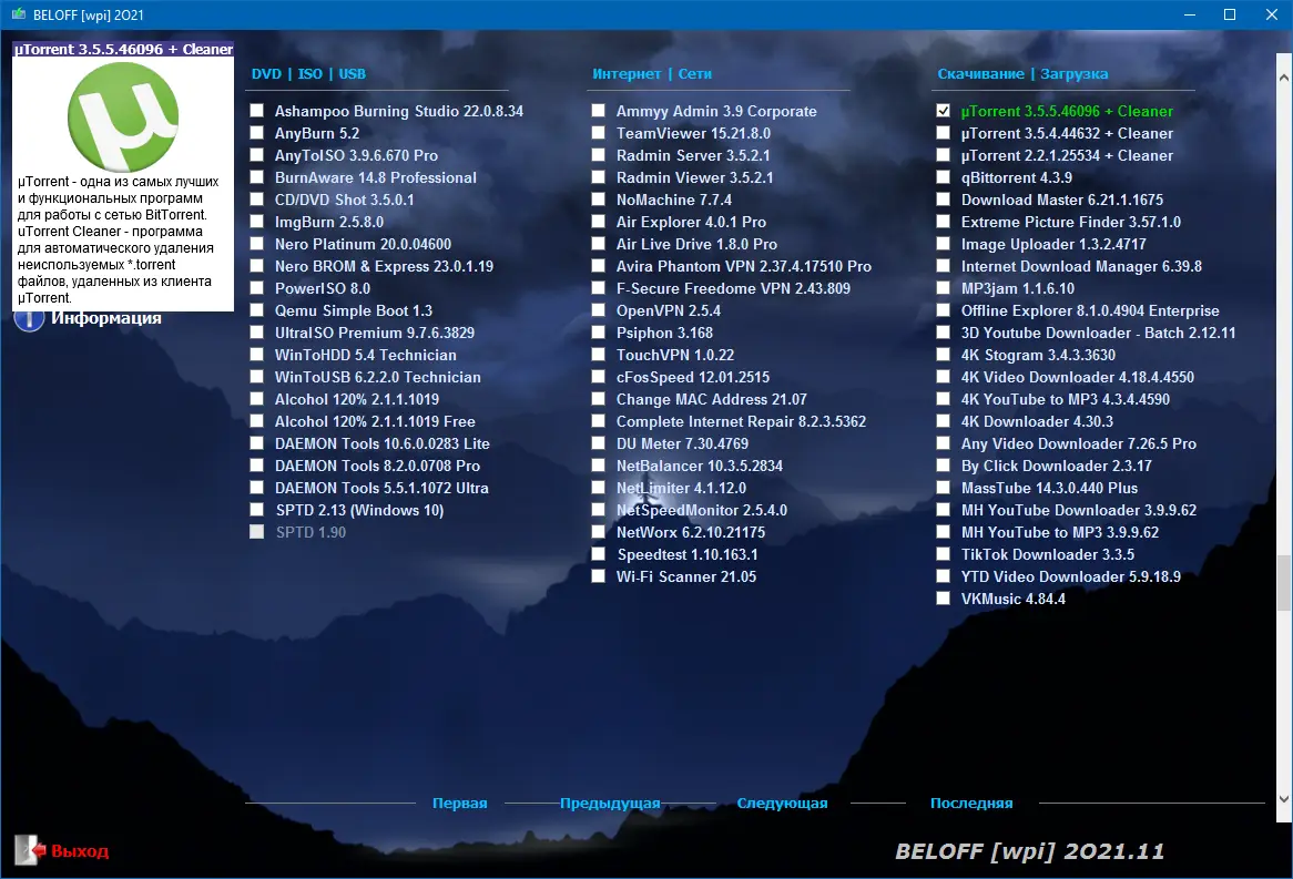Универсальный сборник программ BELOFF — это удобное и продуманное решение для быстрой настройки компьютера под нужды пользователя. В нём собраны лучшие приложения из рунета, распределённые по категориям и готовые к автоматической установке. Сборник поддерживает работу в различных системах Windows и включает портативные версии программ, драйверы, инструменты для обслуживания системы и среду WPI для настройки процесса установки.