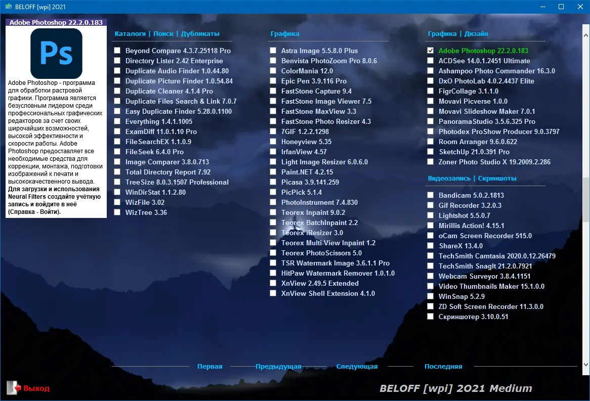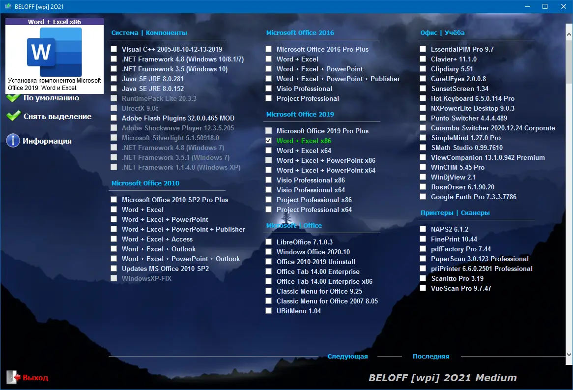 BELOFF — это не просто набор программ, а продуманная, структурированная по категориям коллекция, предназначенная для комплексного оснащения компьютера. Сборка включает в себя всё необходимое ПО для повседневной работы, творчества, настройки системы и восстановления данных. Установка осуществляется автоматически с помощью технологий MInstAll и WPI, что позволяет пользователю выбрать необходимые компоненты и установить их в один клик. Особое внимание уделено совместимости — все приложения протестированы на различных версиях Windows, от 7 до 11, включая разрядности x86 и x64.