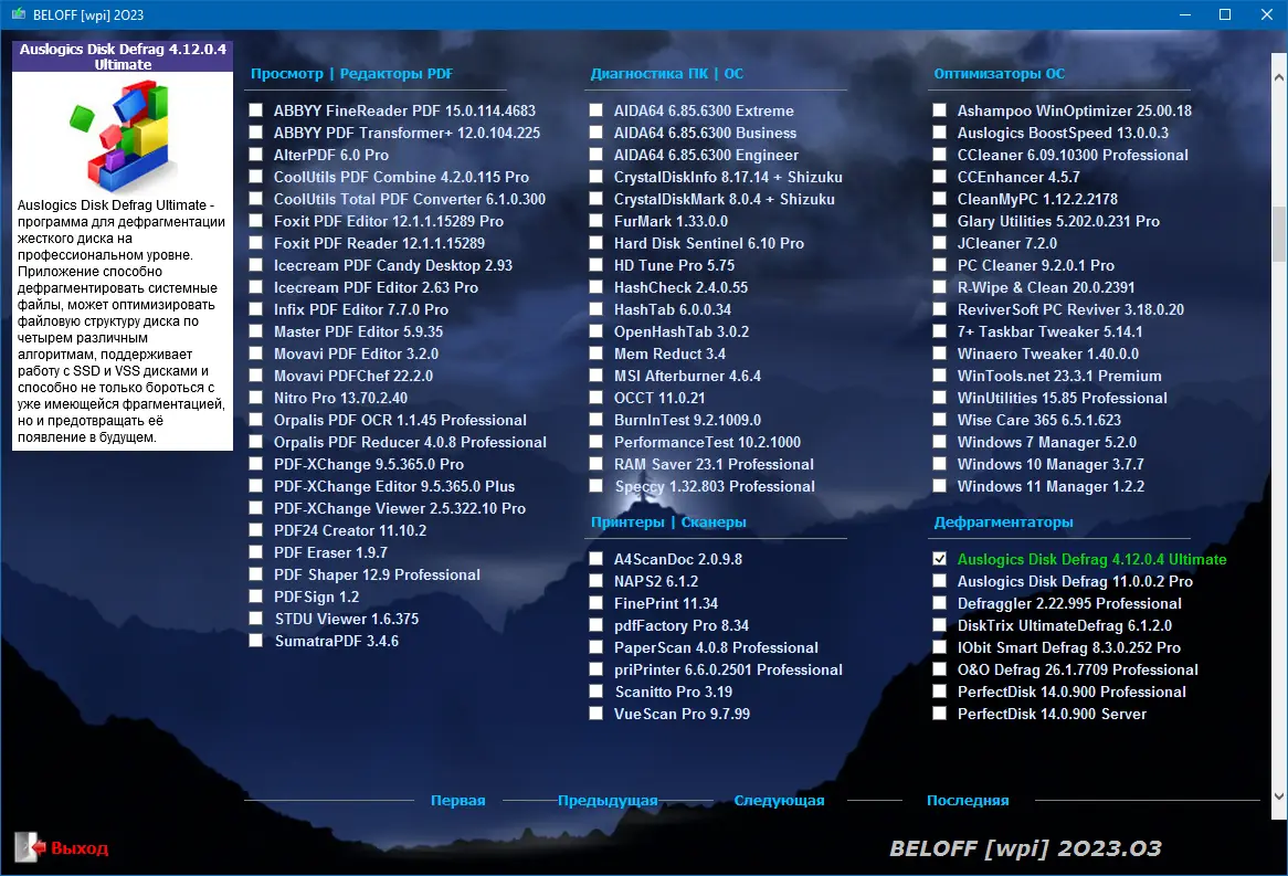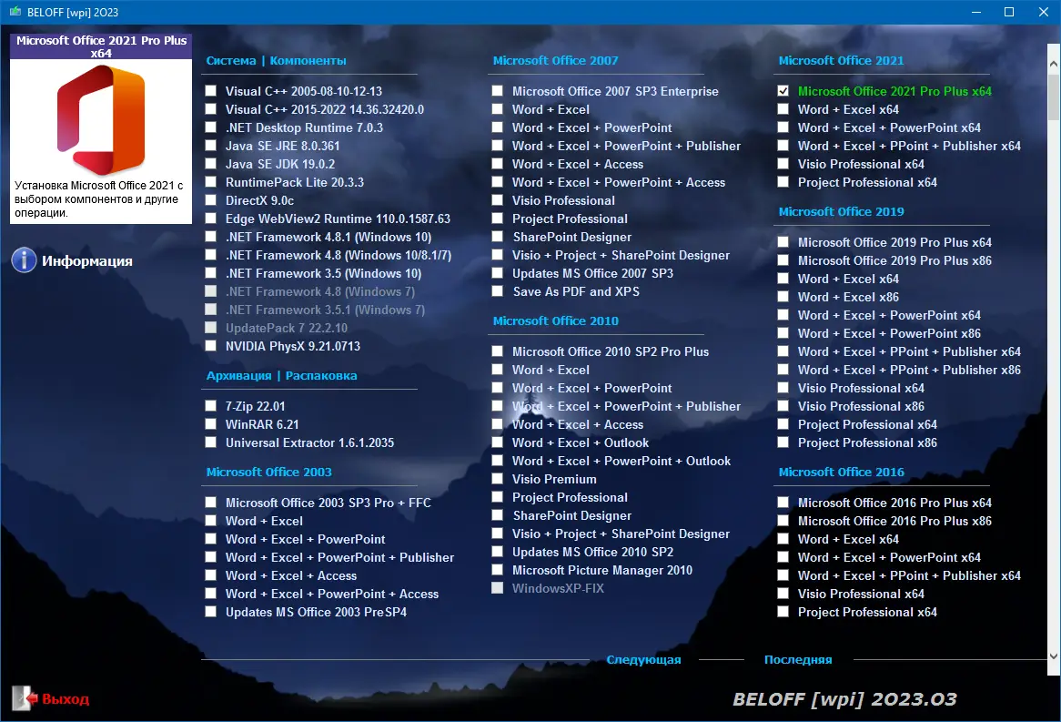 BELOFF представляет собой интегрированную коллекцию программ, объединённую в один образ ISO и оптимизированную для установки на компьютеры под управлением Windows. Сборка регулярно обновляется, и последняя её версия датирована 2025 годом. Все приложения тщательно подобраны, протестированы и классифицированы по категориям. Благодаря использованию технологии WPI, пользователь может выбирать нужные программы из графического интерфейса, не запуская установку всего пакета целиком. Это значительно ускоряет процесс настройки системы и позволяет избежать ненужной нагрузки на диск.