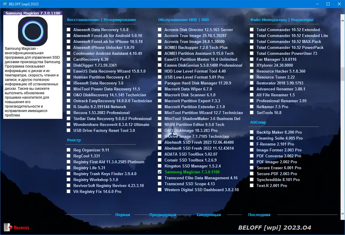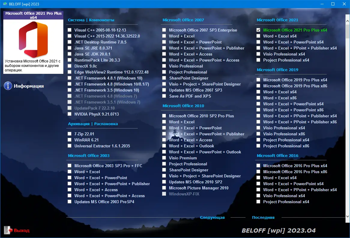 BELOFF — это универсальная сборка программного обеспечения, основанная на технологии WPI, предназначенная для автоматизированной установки широкого спектра приложений на компьютеры под управлением операционных систем Windows. Образ диска охватывает софт для работы, учебы, мультимедиа, интернета и обслуживания системы, что делает его незаменимым инструментом при настройке нового или переустановке старого ПК. Сборка регулярно обновляется, и текущая версия отражает состояние программной базы на 2025.08, обеспечивая совместимость с современным оборудованием и актуальными стандартами безопасности.