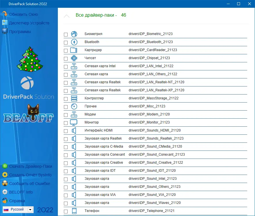 BELOFF представляет собой продуманную систему автоматизированной установки драйверов, объединяющую несколько проверенных инструментов в единую среду. Основу сборки составляют Snappy Driver Installer и DriverPack Solution — два мощных ассистента, способных определить все устройства и подобрать к ним подходящие драйверы без участия пользователя. Благодаря встроенной базе пакетов, охватывающей широкий спектр оборудования, установка происходит быстро и без ошибок. Сборка регулярно обновляется, что гарантирует совместимость с современными конфигурациями.