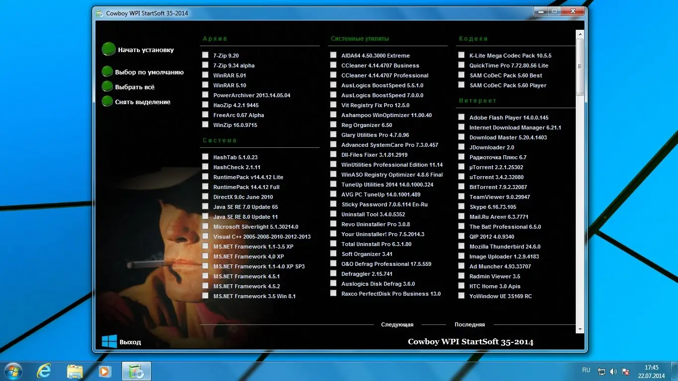 Cowboy WPI — универсальный установщик программ с автоматической инсталляцией, объединяющий более 300 приложений в едином интерфейсе. Сборка охватывает офисные пакеты, графические редакторы, антивирусы, утилиты для обслуживания системы и многое другое. Подходит для быстрой настройки Windows после чистой установки.