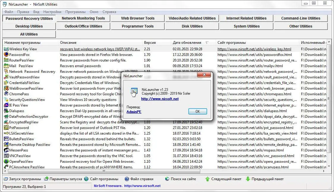 Работа с NirLauncher