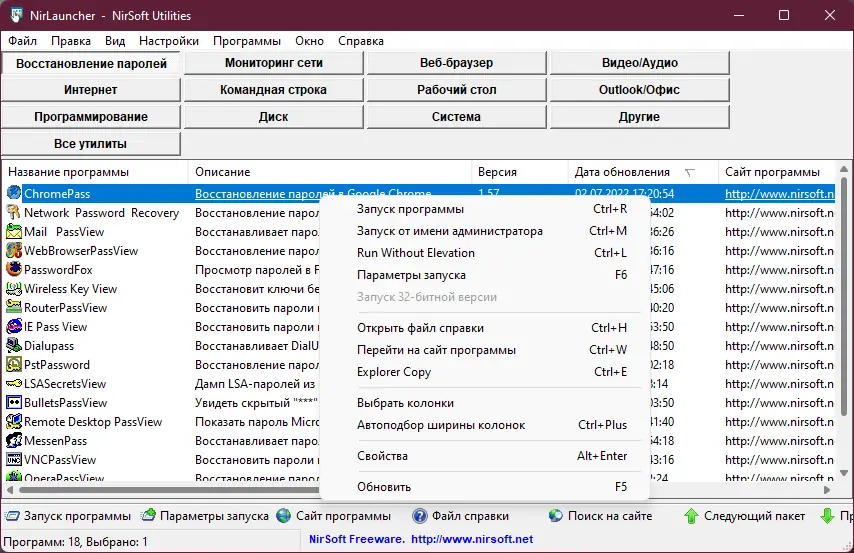 NirLauncher — это портативный package, объединяющий более 200 компактных утилит для решения повседневных задач на компьютере. Программа не требует установки, работает с USB-носителей и не оставляет следов в системе. В состав входят инструменты для настройки системы, восстановления паролей, анализа сети, управления реестром, просмотра данных браузеров и многое другое. Поддержка 32- и 64-битных систем обеспечивает универсальность использования на любом ПК под управлением Windows.