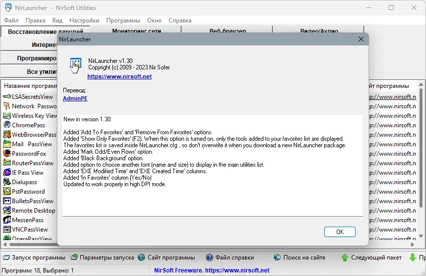 Описание NirLauncher Package