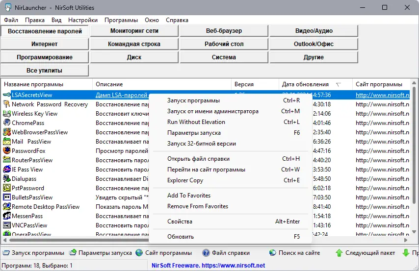 NirLauncher — это универсальный package, объединяющий более 200 портативных утилит для решения повседневных задач на компьютере. Программа не требует установки, работает с USB-носителей и не оставляет следов в системе. С её помощью можно управлять сетью, восстанавливать пароли, редактировать контекстное меню, анализировать браузеры и работать с дисками. Все инструменты собраны в удобном интерфейсе с возможностью сортировки и поиска.
