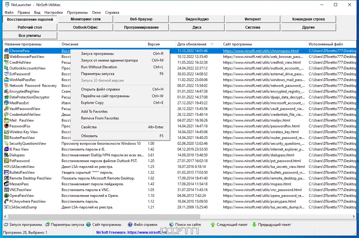 NirLauncher представляет собой универсальный сборник утилит, разработанных командой NirSoft. Каждая из программ в пакете решает узкоспециализированные задачи — от восстановления утерянных паролей в браузерах и почтовых клиентах до анализа сетевых подключений и управления реестром. Все компоненты являются портативными и не оставляют следов в системе, что делает их идеальными для использования на чужих или временных компьютерах. Благодаря встроенной фильтрации и поиску, пользователь быстро находит нужный инструмент, даже не зная его точного названия.
