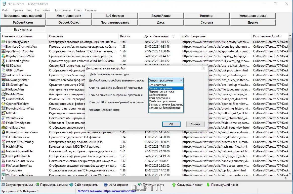 Запуск программы происходит в один клик — достаточно открыть файл NirLauncher.exe. После старта открывается окно со списком всех доступных утилит, сгруппированных по категориям. Пользователь может использовать строку поиска, фильтрацию по дате обновления или сортировку по алфавиту. Для запуска нужного инструмента достаточно дважды щёлкнуть по его названию. Если утилита используется с флешки, её конфигурация сохраняется локально, что позволяет продолжить работу с теми же настройками на другом компьютере. Также доступна опция добавления сторонних программ в меню, что расширяет функциональность beyond стандартного набора.