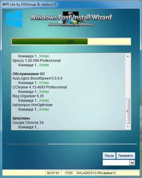 После запуска WPI Lite откроется графический интерфейс с перечнем доступных программ, сгруппированных по категориям. Пользователь может выбрать нужные компоненты, установить их по отдельности или применить массовую установку. Процесс автоматизирован: после подтверждения выбора начинается последовательная установка с минимальным участием пользователя. Однако, как указано в примечании, не все программы поддерживают полностью тихую установку — в некоторых случаях может потребоваться ручное подтверждение на определённых этапах.