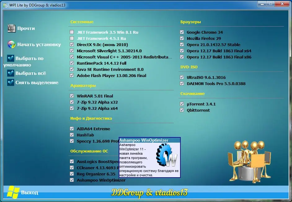 WPI Lite — это компактный универсальный инсталлятор программного обеспечения, оптимизированный для установки с CD-диска и совместимый с 32- и 64-разрядными системами Windows. Сборка включает необходимые компоненты, утилиты обслуживания, архиваторы, браузеры и инструменты диагностики, объединённые в удобную систему автоматической установки.