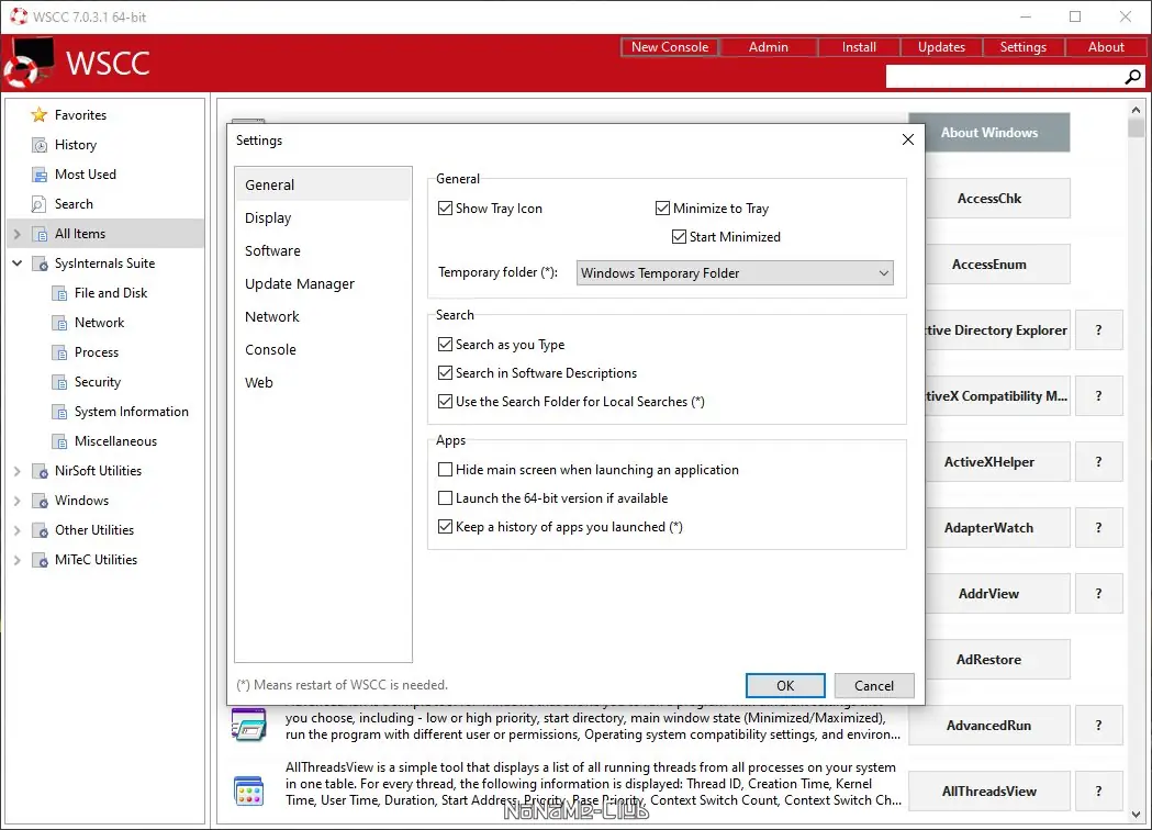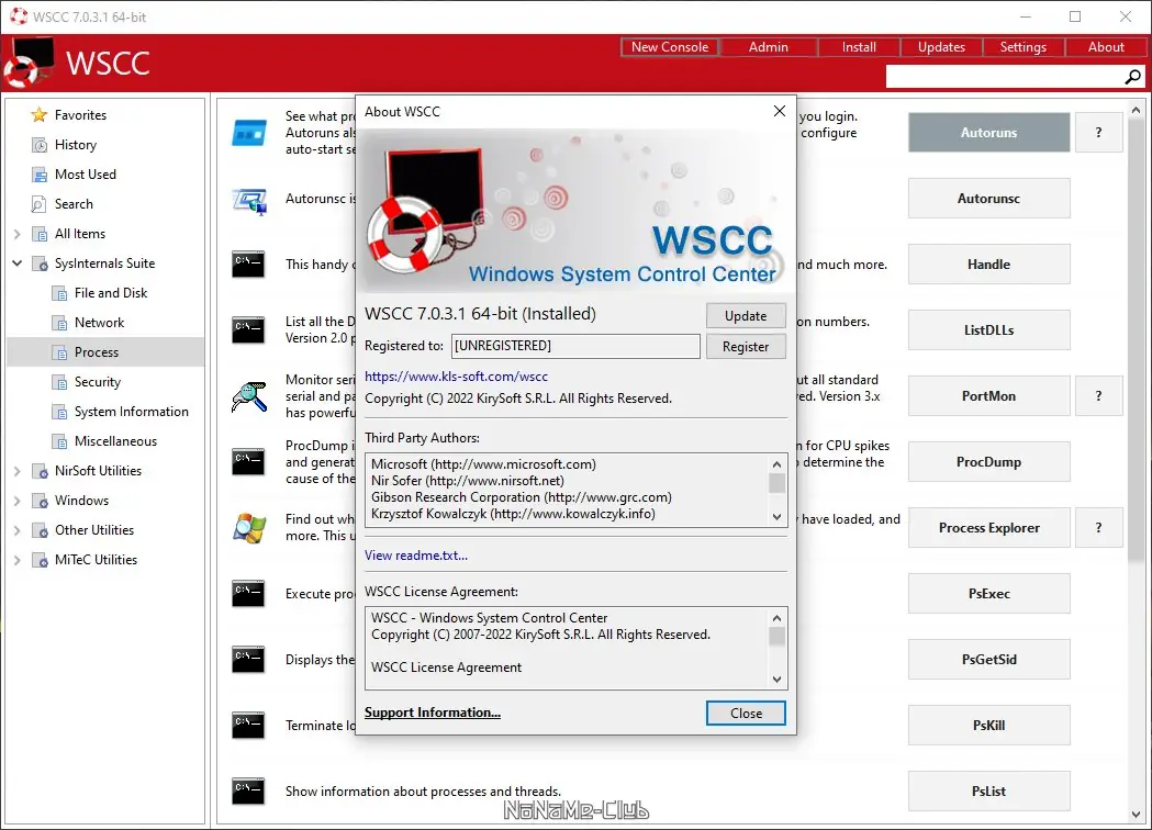 WSCC представляет собой удобную платформу для системных администраторов и продвинутых пользователей, которым регулярно приходится работать с диагностическими и аналитическими утилитами. Программа не требует установки и может запускаться с любого носителя, что делает её идеальной для использования на разных компьютерах. При первом старте WSCC автоматически сканирует систему на наличие установленных версий Sysinternals и NirLauncher, чтобы интегрировать их без повторного скачивания.