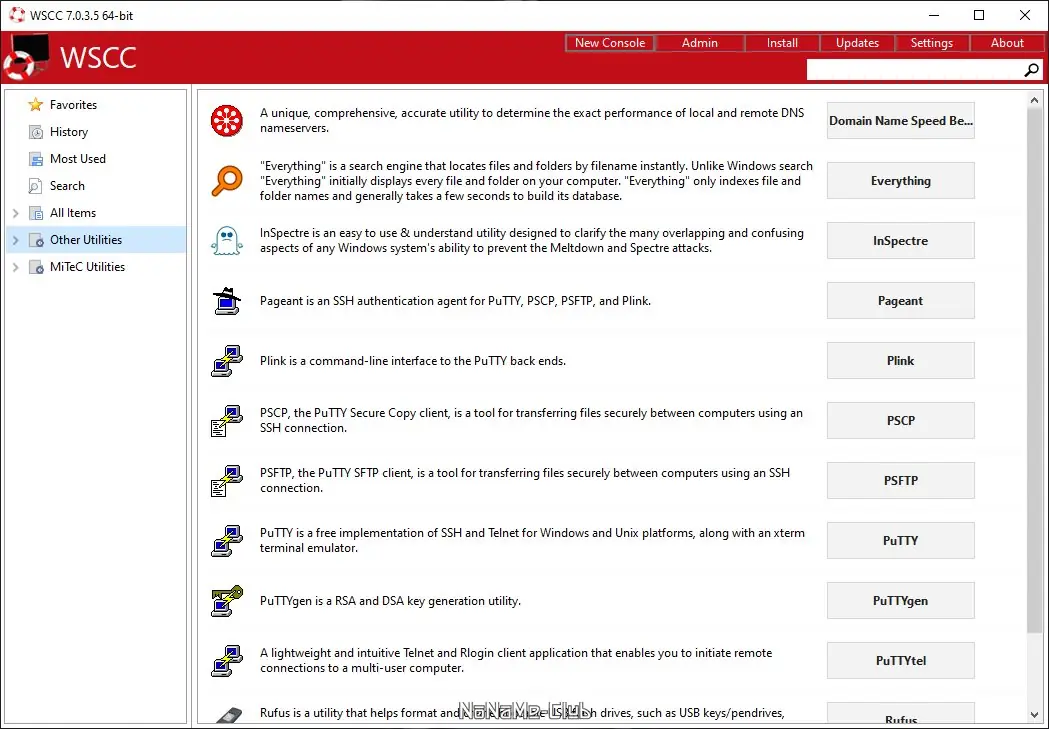 WSCC — портативный центр управления системой Windows, объединяющий утилиты из пакетов Sysinternals Suite и NirLauncher. Программа организует более 300 инструментов диагностики, настройки и восстановления в едином интерфейсе с поиском, избранными и системой обновлений. Работает без установки, поддерживает русский язык и позволяет быстро запускать встроенные средства Windows.